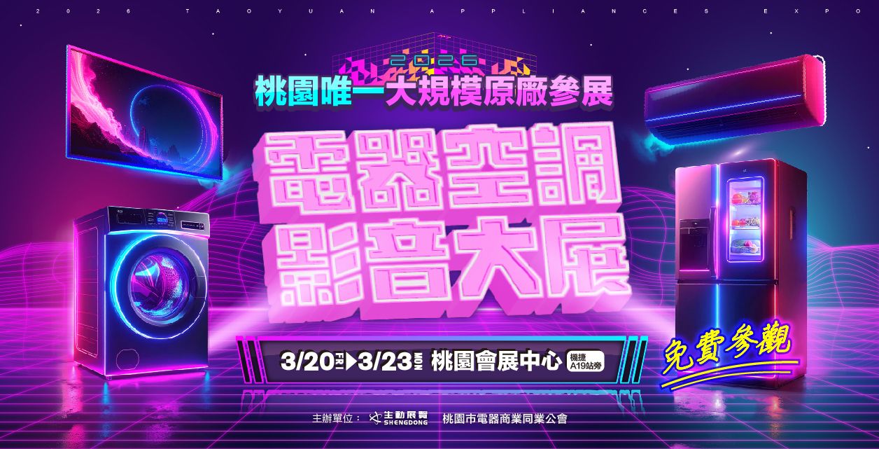 凡成功預約「桃園電器展預約逛展抽萬元家電」者,即可於展覽期間2026/3/20(五)~3/23(一)10:00~18:00至北台灣全新國際級展覽館『桃園會展中心(機場捷運A19站旁)大會服務台』,憑登錄成功後獲得之QR Code手機畫面,經工作人員設備確認無誤,即可參觀桃園電器展獲得萬元家電抽獎資格,進入展覽選購數百款家電皆享展覽獨家加碼驚爆優惠。