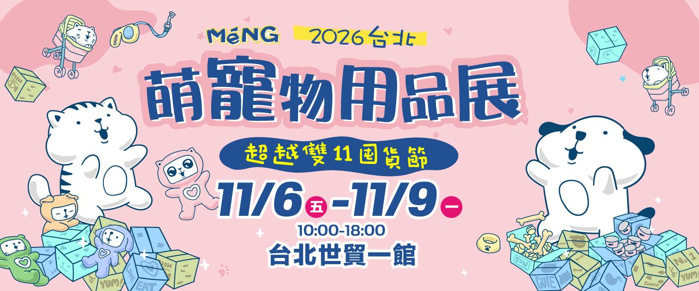 毛孩爸媽,準備衝了!2026台北萌寵物用品展將在11/06-11/09於台北世貿一館盛大開展,四天限定的「超越雙11囤貨節」強勢開跑!集結全台最熱銷的飼料、凍乾、鮮食、推車、服飾、清潔用品、保健品等,以及話題智能寵物家電一次集合,展場限定優惠下殺到底,最低折扣讓你心花怒放,一次採買一整年的庫存。