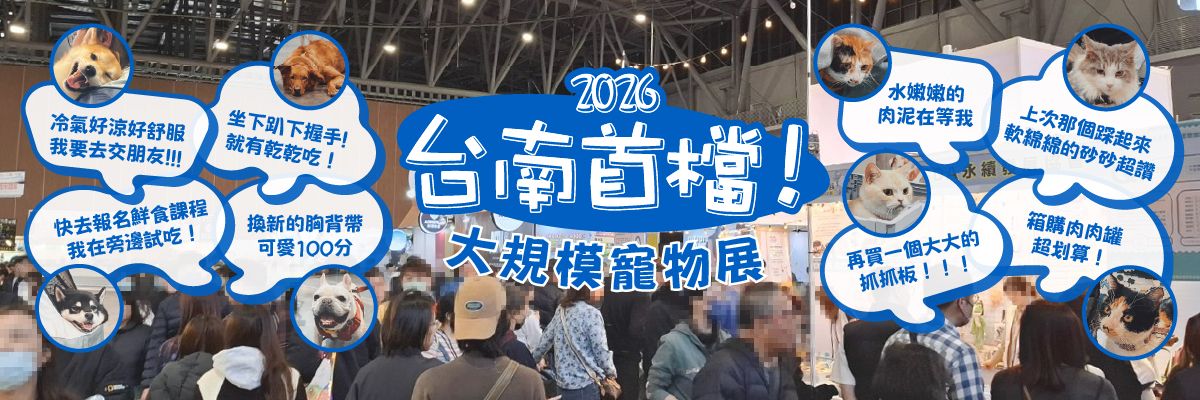 從超人氣的低敏機能飼料、補水必備的機能罐罐,到高鮮含肉的營養凍乾;以及適應台南路況的全路面避震推車、循環散熱的涼感睡床與高透氣涼感裝備,更有解放雙手的 AI 寵物家電與客製化專屬配件。 在舒適的大臺南會展中心裡,讓寵物的夏季生活提案更精準、更輕鬆。