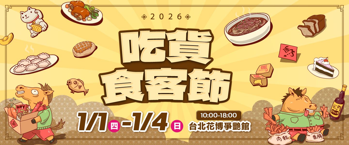 2026新年第一檔美食盛會-吃貨食客節,以「新食代・好食光」為主題,從地方風味到異國饗宴,融合傳統與創新,串連各式即食料理、伴手禮、茶、酒、點心、異國美味等多元類型,針對食客們打造一場「吃得到」、「聞得到」、「聽得到」、「摸得到」的美食盛典!